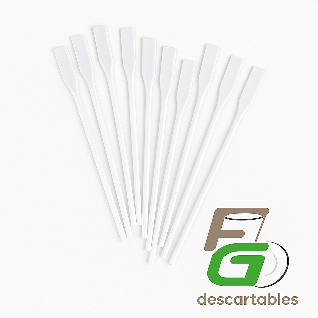 Prácticos y funcionales, los agitadores plásticos blancos son ideales para remover café, té o cualquier bebida caliente o fría. Su diseño liviano y resistente garantiza un uso cómodo e higiénico. Perfectos para oficinas, cafeterías, bares o eventos.