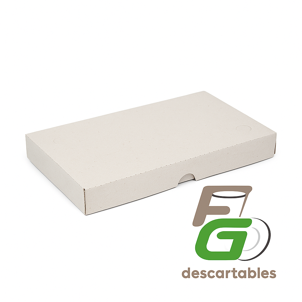 La Caja de Pizza 1/2 o Lomo Gris Ref x100 unidades es una excelente opción para el envasado y entrega de comidas rápidas. Fabricada en cartón gris reciclado reforzado, ofrece gran resistencia, firmeza estructural y una presentación prolija y ecológica.
