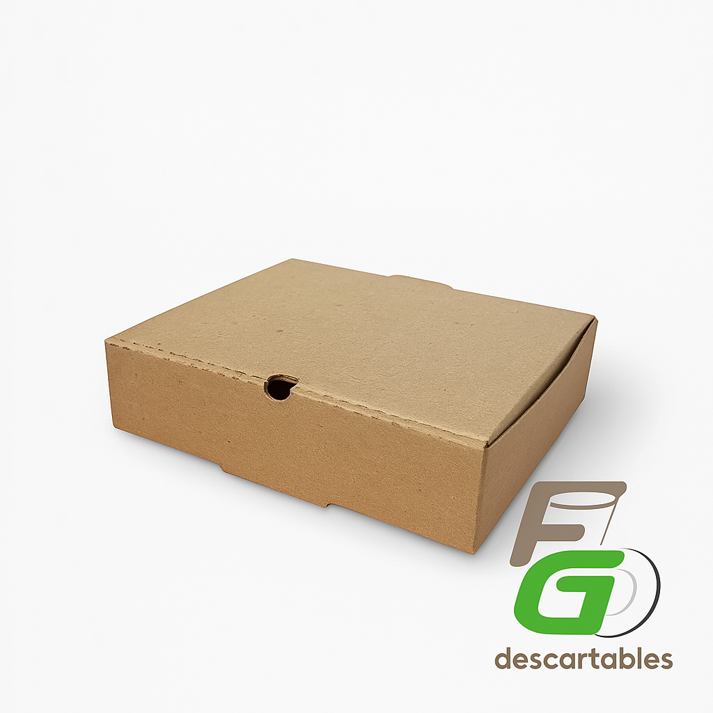 Fabricada en cartón microcorrugado kraft, ofrece mayor rigidez y durabilidad, permitiendo transportar una docena de empanadas calientes sin deformarse ni humedecerse. Su diseño alto brinda espacio adicional para mantener el producto intacto.