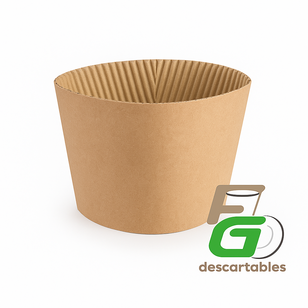La Funda Protectora de Cartón Kraft es ideal para bebidas calientes como café, té o infusiones. Su diseño ondulado y resistente permite aislar el calor, brindando comodidad y seguridad al sostener el vaso.