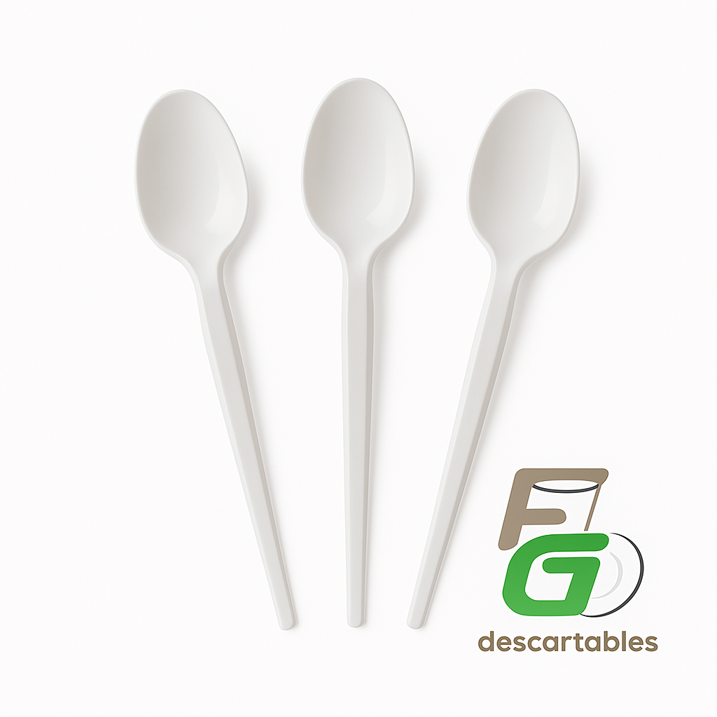 Prácticas, resistentes y elegantes, las cucharas plásticas blancas FG Descartables son ideales para postres, eventos, reuniones o uso cotidiano.