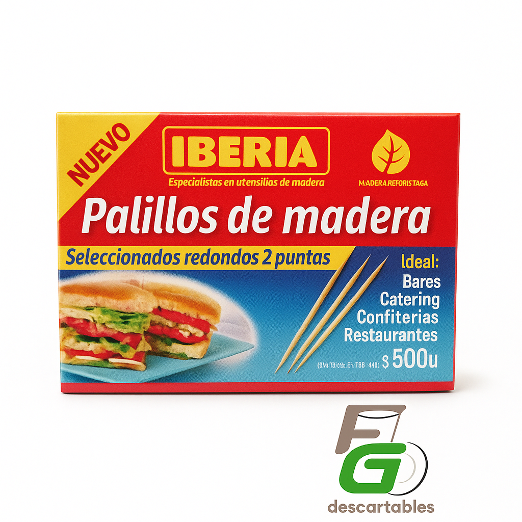 Prácticos y resistentes palillos de madera redondos con doble punta, seleccionados cuidadosamente para garantizar calidad y durabilidad. Presentados en caja de 500 unidades, son ideales para bares, restaurantes, confiterías, catering y uso doméstico.