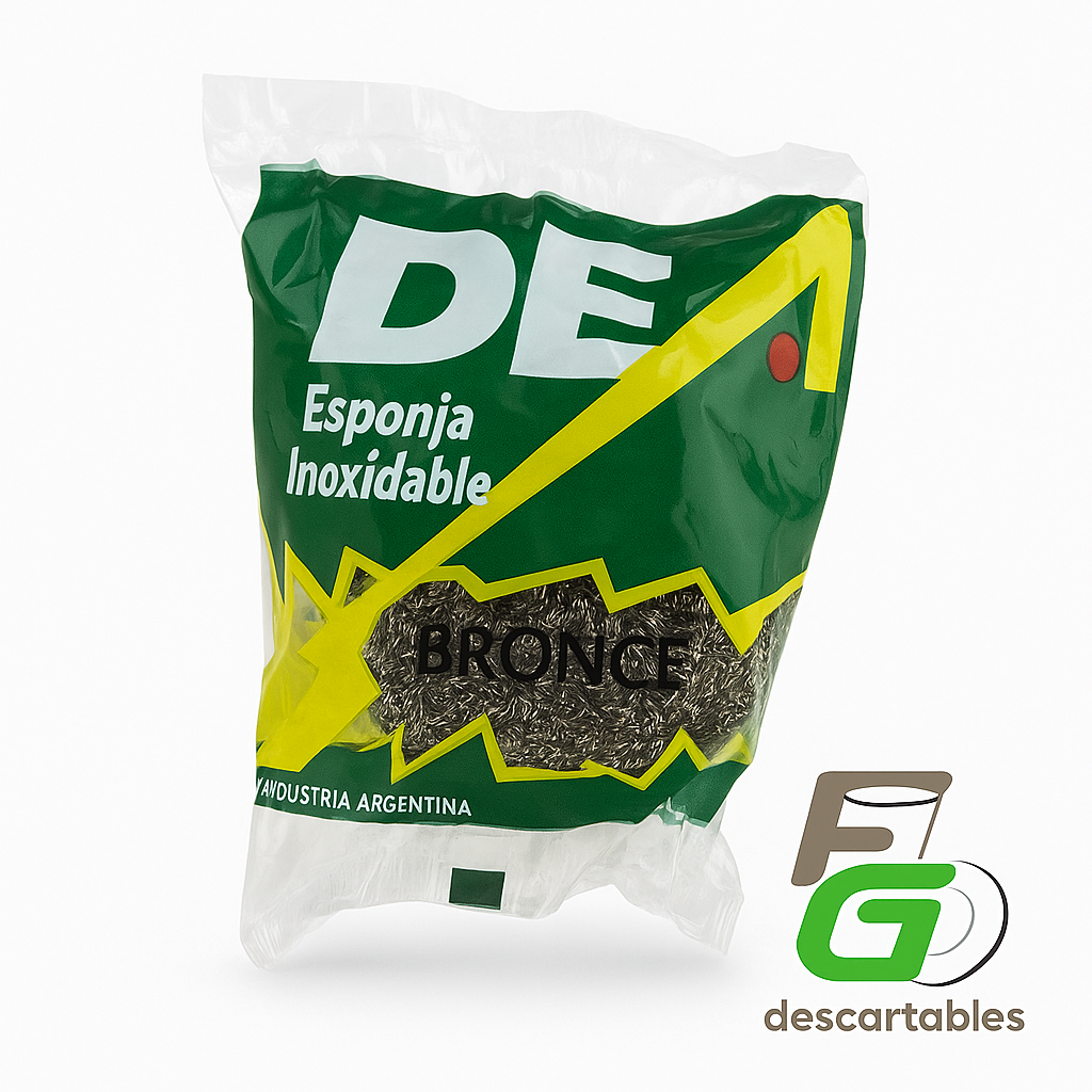 La Esponja Inoxidable DEP Bronce es perfecta para remover grasa difícil y suciedad incrustada en ollas, sartenes y utensilios de cocina. Su material de bronce garantiza un alto poder abrasivo sin oxidarse, ofreciendo mayor durabilidad y resistencia.