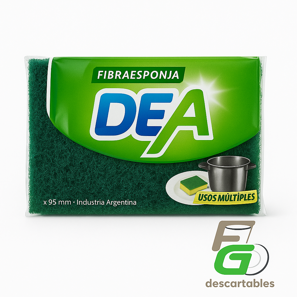 La Fibra Esponja DEA combina la practicidad de una esponja con la eficacia de la fibra abrasiva, ofreciendo una limpieza completa y versátil para tu hogar. Ideal para ollas, sartenes, vajilla y superficies de cocina.