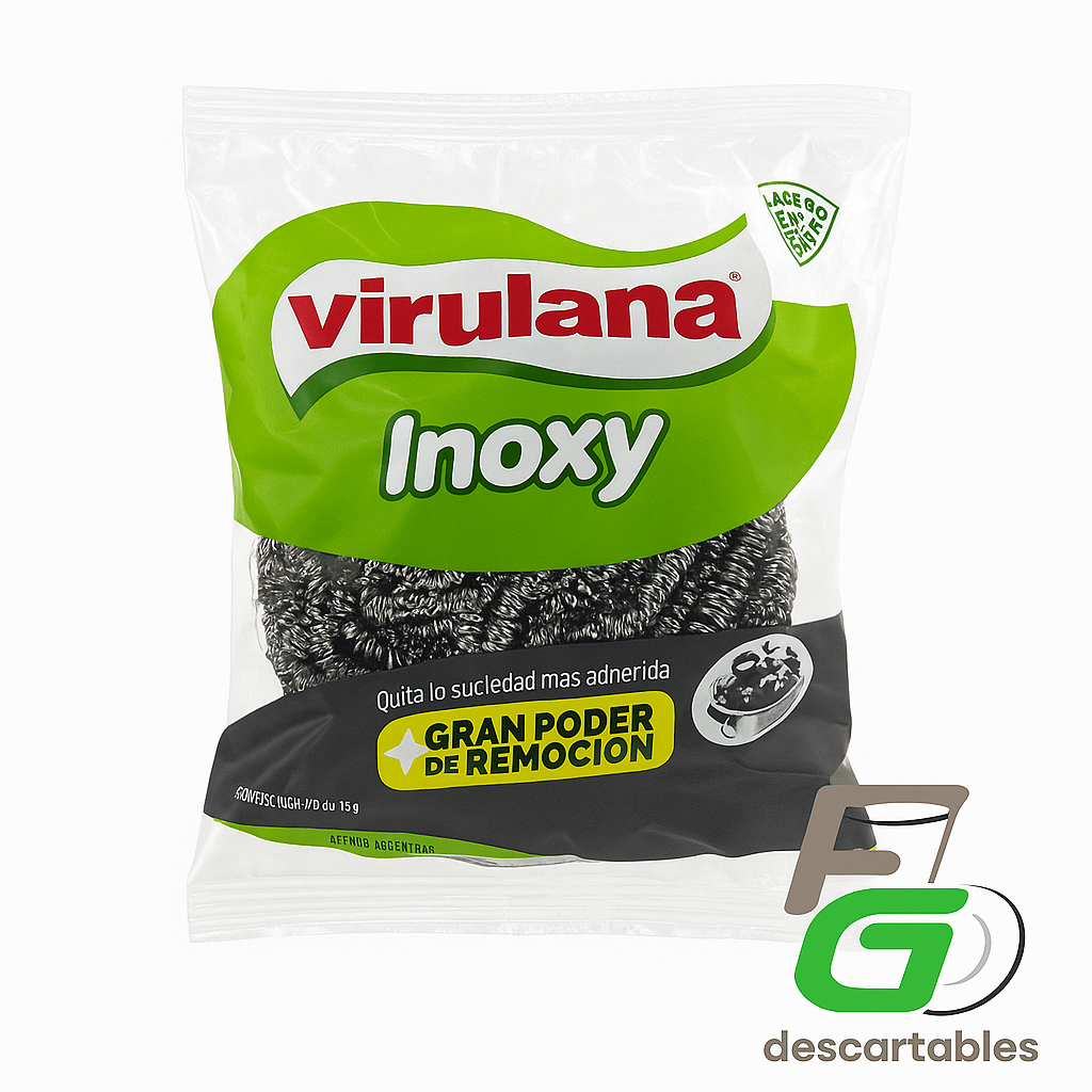 La Virulana Inoxy está diseñada para quitar la suciedad más adherida y difícil de remover en ollas, sartenes, parrillas y utensilios de cocina. Su material inoxidable asegura un gran poder de remoción sin oxidarse, garantizando mayor durabilidad.
