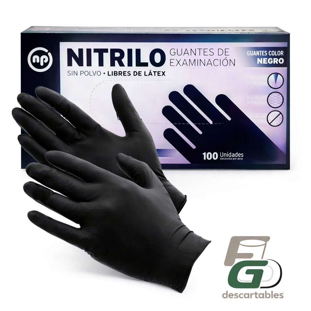 Ideales para tareas que requieren máxima higiene y protección. Fabricados en nitrilo de alta calidad, estos guantes descartables, sin polvo y libres de látex ofrecen excelente resistencia a químicos, perforaciones y desgarros. Su color negro es perfecto para entornos profesionales donde se busca una estética sobria, como gastronomía, estética, tatuajes, limpieza y uso médico.
