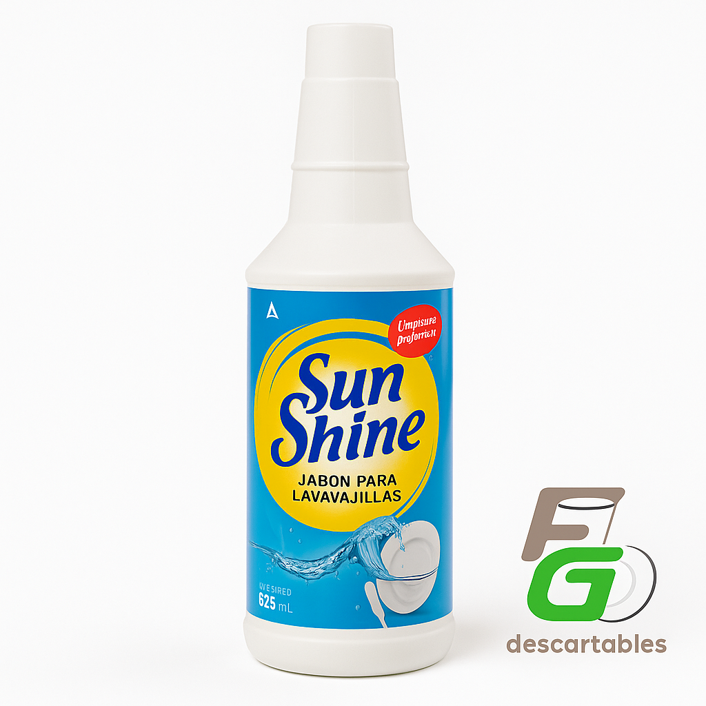 El Jabón para Lavavajillas Sun Shine ofrece una limpieza profunda y eficaz que elimina fácilmente la grasa y restos de comida, dejando tu vajilla reluciente y sin residuos. Su fórmula concentrada rinde más y garantiza un brillo impecable en platos, vasos y utensilios.