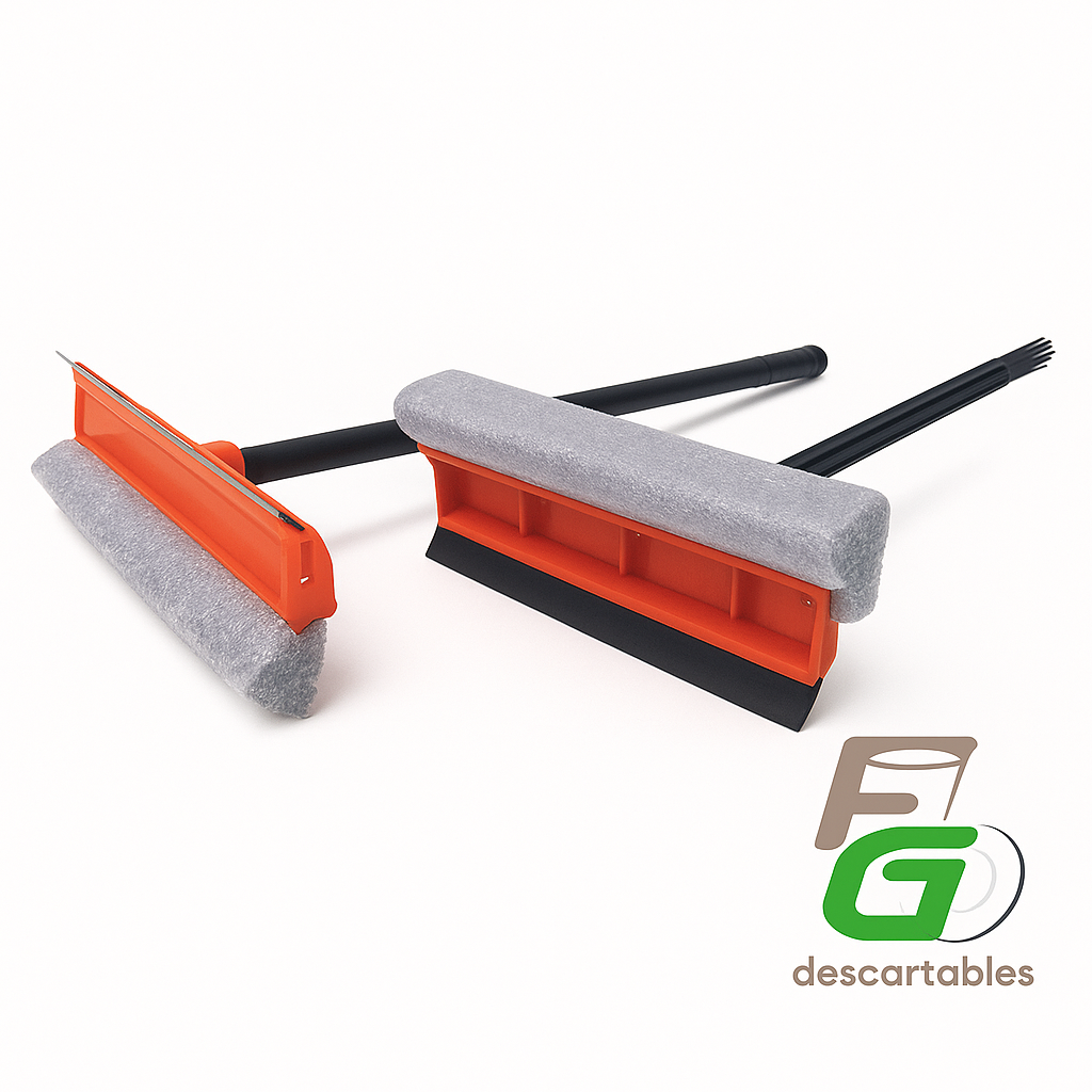 Práctico y resistente lampazo diseñado especialmente para la limpieza de parabrisas y carrocerías. Cuenta con esponja absorbente de alta calidad y goma de secado, lo que permite remover fácilmente suciedad, agua y residuos sin dañar la superficie del vehículo. Ideal para estaciones de servicio, lavaderos de autos o uso particular.