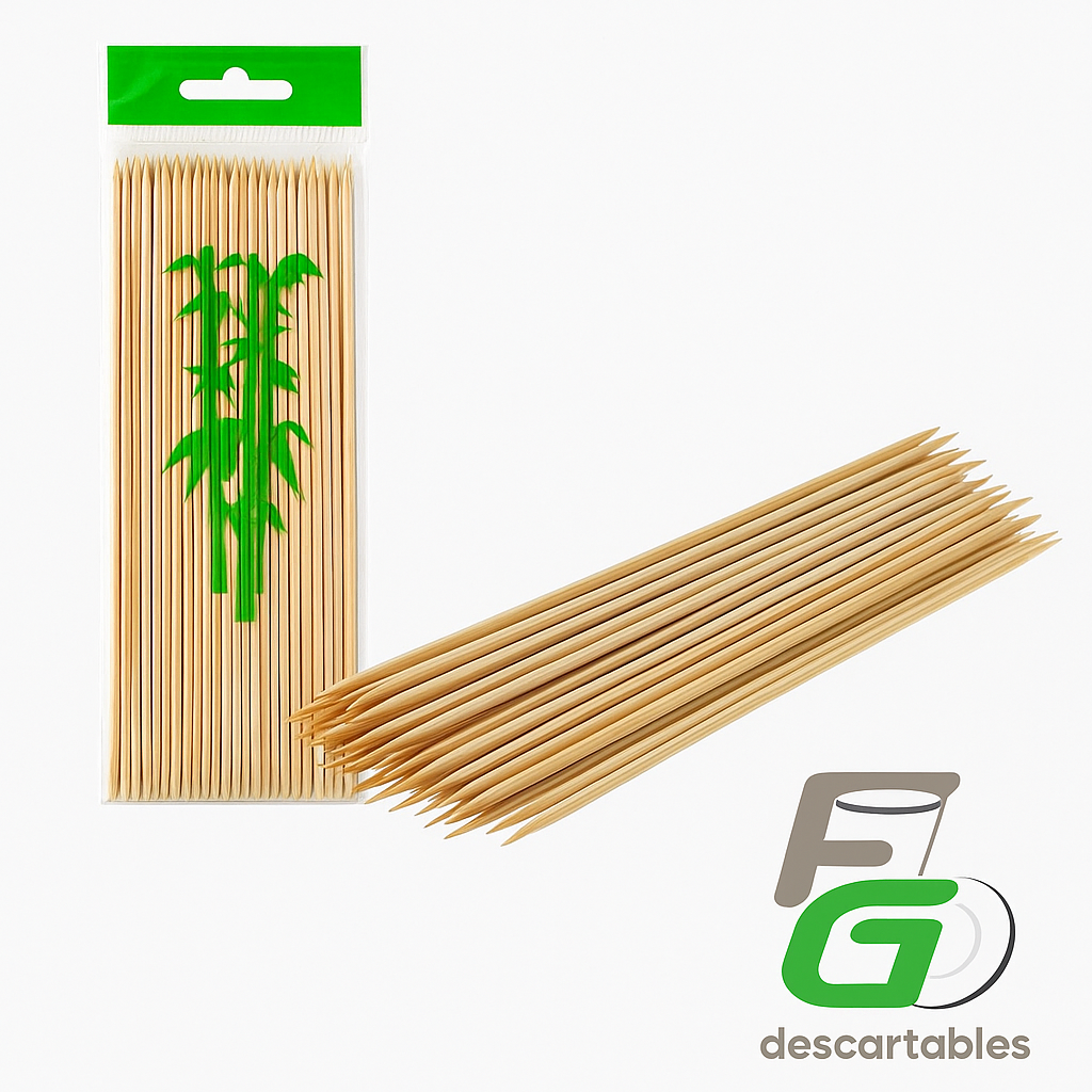 Fabricados en bambú natural, resistentes y ecológicos, ideales para preparar brochettes, pinchos, frutas o aperitivos. Su diseño liso y punta afilada facilita el armado y la cocción pareja de los alimentos. Apto para horno, parrilla o plancha.
