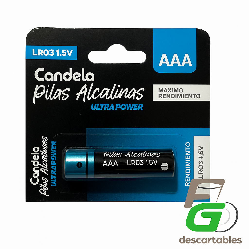 Las pilas alcalinas Candela Ultra Power AAA (LR03 1.5V) están diseñadas para brindar máximo rendimiento y larga duración, siendo la mejor opción para dispositivos de uso frecuente como controles remotos, mouse inalámbricos, linternas pequeñas, juguetes, radios portátiles y más.