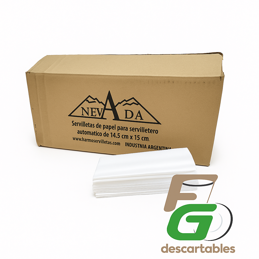 Servilletas NEVADA de papel tissue blanco, tamaño 18×18 cm, sin guarda. Ideales para uso gastronómico, cafeterías, bares, eventos y take away, ofreciendo una excelente relación entre calidad y cantidad.