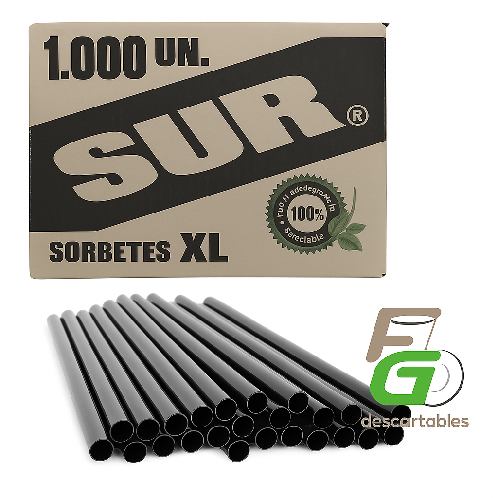 Los sorbetes XL negros SUR son ideales para bares, restaurantes, cafeterías, kioscos y todo tipo de eventos. Su diseño extra ancho permite disfrutar mejor de bebidas espesas como licuados, tragos, jugos y batidos