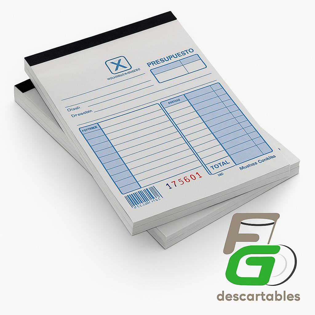 Cuenta con hojas autocalcantes duplicadas, que permiten conservar una copia fiel de cada presupuesto, pedido o comanda sin necesidad de calcar.